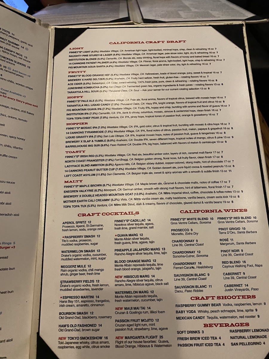 Finney's Crafthouse - Westlake Village Menu